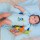A blue short-sleeved bodysuit (9-12 months) with press studs at the bottom and a design of ''Fifis'' with a ballon, made of 100% certified organic cotton!